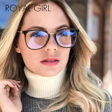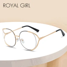 ROYAL GIRL אופנה עדשות שקופות עגולות משקפיים נשים מסגרת סגסוגת נוחות משקפי רגליים נוחות נגד UV US952