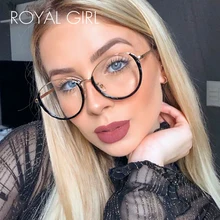 ROYAL GIRL משקפיים עגולים מסגרות נשים עדשות שקופות למחצה ללא שפה ניתן להצטייד במשקפי מחשב אופטי SS721
