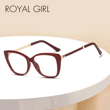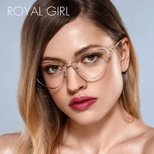 ROYAL GIRL אופנה משקפיים משקפיים מסגרות משקפיים נשים מגמות אופנתיות עדשות שקופות מסגרת סגסוגת משקפי שמש Ss721