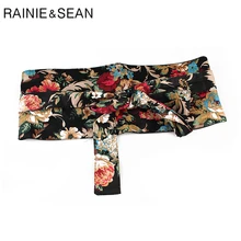 RAINIE SEAN חגורה רחבה נשים קימונו יפני חגורה פרח הדפס פרח נשים עניבה עצמית קשת גבירותיי בציר חגורה רחבה Cummerbund