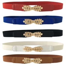 אדום אדום שחור לבן כחול ירוק כחול 5 צבעים חגורה דקה לנערות עם צורת העלה אלסטי להקת סגסוגת אופנה מזדמן