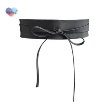 נשים נשיות גבירותיי עור PU רך עוטפות סביב העניבה מחוך Cinch חגורת שמלה רחבה