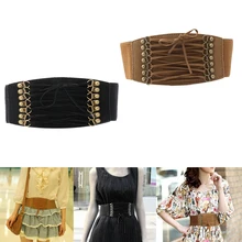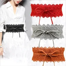 נשים גבירותיי וינטג 'חגורת קשת רחבה עור PU שמלת תחרה חגורה כותנה מחוך אלסטית Cinch המותניים חגורת חגורה דקה