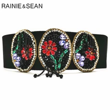 RAINIE SEAN חגורות רחבות חגורות רחבות אלסטיות לנשים ריינסטון חרוזים מחוך למתוח פרחים שחורים לאביזרי וינטג '