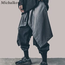 michalkova לא סדיר היפ הופ גברים מכנסי חצאית חצאית Harajuku מתכווננת Streetwear שחור קפלים סינר גותי ג'וגרים גותיים