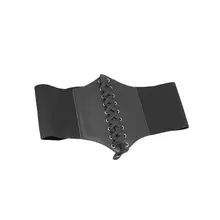 RAINIE SEAN פאנק רוק אביזרי עור לנשים גומי חגורה רחבה חגורה רחבה לנשים שרוכים חגורת מחוך