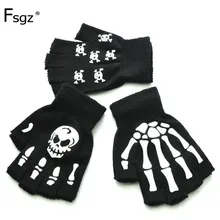 כפפות סריגה לילדים בני 5-12 שנים באור הזוהר הראש שלד אנושי זוהרים כפפות אצבעות כפפות חדשות