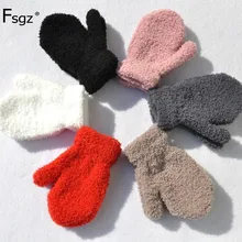 כפפות לעטוף חורף לילדים סרוגות מוצקות בתוך צמר רך כפפה מעובה 1-4 שנים כפפות מכוסות אצבעות