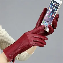 עור נשי באיכות גבוהה אופנה חורף פלוס כפפות שחורות חמות נשים נהיגה כפפות מסך מגע טלפון