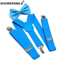 SHOWERSMILE בנים כתפיות ילדים כחולים ילדים כתפיות צפצף צהוב ורוד צהוב שחור כהה אדום חתונה לתינוקות סט פסים עניבת פרפר