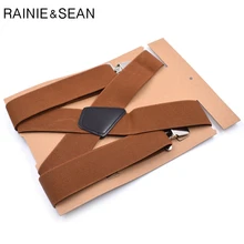 RAINIE SEAN כתפיות גברים רחבים 4 קליפים חום כתפיות גברים כתפיות כתף עסקי עור אמיתי חגורת כתפיות 120 ס