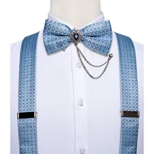 עניבת פרפר משי משי סט 6 קליפים פסים כתפיות צורת Y למסיבת חתונה אביזרי גברים עם שרשרת סיכה DiBanGu