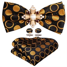 עניבת פרפר משי מזהב לגברים פרחים מתכווננים לחתונה לחתונה Accessory סט נשלף בארי. וונג מתנה