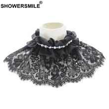 SHOWERSMILE צווארון להסרה נשים צווארון תחרה שחורה מזויף נשיות נשות נשלפות אלגנטיות לפרוע חרוזים צווארון שיפון