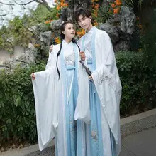 גברים ונשים Hanfu בגדים סיניים מסורתיים עתיקים סטים כחולים סטים פנטסיה קרנבל תלבושות למבוגרים תחפושת זוגית XXL