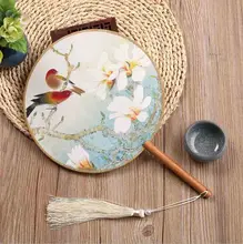 מאוורר יד סיני Hanfu נשים ידית עץ עגולה עתיקה סינית מודפסת מניפה Cheongsam סיני מתנת אוהד יד Hanfu לנשים