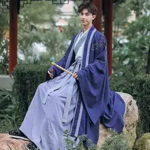 רקמת כחול גברים Hanfu בגודל גדול הסיני מסורתי Hanfu סט זכר תלבושות קוספליי ליל כל הקדושים קרנבל לגברים פלוס גודל 4XL