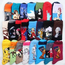גרביים לגברים גרסה גדולה של ציור שמן רטרו גברים ונשים גרביים זוג גרבי גאות המלצה על אישיות ספרותית