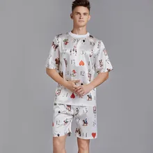 סט פיג'מה קיץ גברים הדפס סאטן גברים פיג 'מה חליפת מכנסיים קצרים שרוול קצר משי פיג' מה גבר הלבשת כותונת לילה פיג 'מה זכר