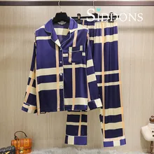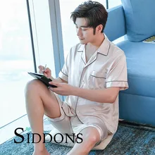 Siddons פיג 'מה משי באיכות גבוהה זכר הלבשת גברים טהורים אופנה משי משי מודפסים מכנסי פיג'מה עם שרוולים קצרים סטים של שני חלקים