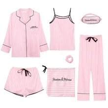 פיג'מה לנשים קובע שבעה מחשבים ארוכים + סטים של טנקים עליונים + כיסוי עיניים + שקית אחסון קיץ הלבשת מזדמן בסגנון חדש לבנות