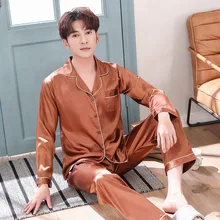 2020 פיג'מה עם שרוולים ארוכים זוג כותונת לילה חלוק רחצה לגברים משי פיג 'מה משי באיכות גבוהה סימולציה משי