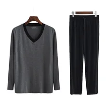 סתיו והחורף שולי צווארון V מודאלי שירות ביתי לגברים מכנסי שרוולים ארוכים Loose מזדמנים שירות ביתי לגברים