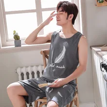 סט פיג'מה 2020 סגנון חדש לגברים קיץ דק פיג 'מה כותנה גברים סטים אפוד הלבשת חולצות ללא שרוולים מכנסיים קצרים 2 יח' \ סט חולצות שינה
