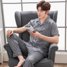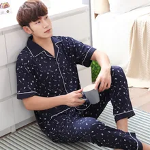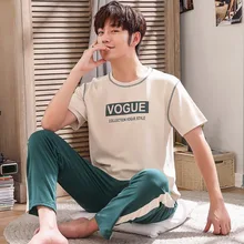 פיג'מה גברים קיץ כותנה עם שרוולים קצרים כותנה באביב ובסתיו פיג'מה של גברים לבית שירות חליפות שרוולים קצרים בסגנון טרי