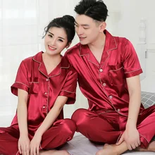 פיג'מות משי זוגיות בצבע אחיד בצבע אחיד לגברים מכנסי שרוול קצר לגדול