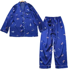 פיג'מה של גברים סימולציה משי פיג'מה סט יוניסקס הדפס סקסי סגנון רך אופנה נוחה סט שני פיג'מות