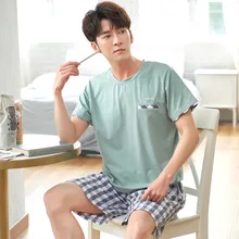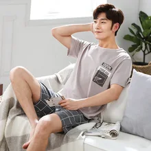 פיג'מה כותנה לגברים מכנסי שרוול קצר סטודנטים קיץ סעיף דק של גברים בית מקרית בגדים מזדמנים שרוולים קצרים בסגנון טרי
