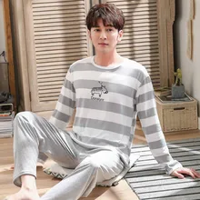 סט פיג'מה 2020 אביב חדש גברים מקרית שרוול ארוך O צוואר פיג 'מה רזה לגברים אותיות מודפסות חליפות הלבשת Homewear