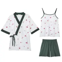 100% פיג'מה כותנה סט פיג 'מה מתוק לנשים מכנסי קלע גלימה ארוכים 3 יח' \ סט הלבשת בית בגד ים גודל גדול אמא 2020
