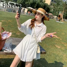 FINEWORDS סט שני חלקים נשים מקרית חולצה עם שרוול ארוך לבן ומכנסי מכנסי חוף מזדמנים סטים תואמים קיץ אנסמבל Femme