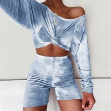 לופיה סט שני חלקים מכנסי אופנוע נשים קיץ סתיו סט שני חלקי נשים יבול חולצות נשים סטים לאונג 'Ropa Mujer אנסמבל Femme