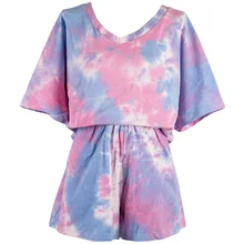 CAWA נשים פיג'מה סט שרוול קצר צווארון V הדפסת חולצות מכנסיים קצרים סט הלבשת פיג 'מה 2 יחידות אופנה נשים Femme סט