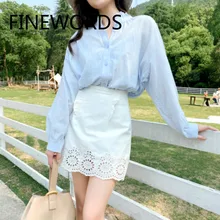 FINEWORDS סט חצאית דו חלקית וינטג 'כחול כחול אלגנטי וחצאית תחרה לבנה דק קיץ אנסמבל קיץ Femme סטים בגדים