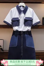 גודל 4XL בתוספת גודל 2020 נשים אחות שמנות בקיץ היו חולצה זרה + חצאית ג'ינס חליפת שני חלקים להגדיר חצאיות קיץ לנשים