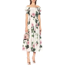 Gedivoen מסיבת מסלול מסלול האופנה קיץ נשים סלאש צוואר סטרפלס פרחוני הדפס קו שמלות אלגנטיות אלגנטיות רחוב גבוה