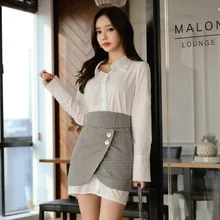 בגדים קוריאניים בסתיו 2019 לנשים מחוך חולצה עם שרוול ארוך וכפתור כפול פיצול מיני סקריט סט שני חלקים חליפת נשים