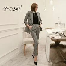 חליפת כפתור זינגר ומכנסי נדן נשים סט שני חלקים משובצים הדפס משובץ OL עבודת משרד סתיו חורף נשים סט שני חלקים