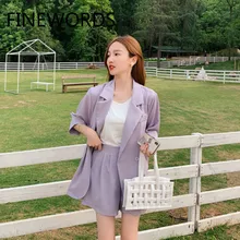 FINEWORDS חליפות סגול אלגנטיות ומכנסיים קצרים וינטג 'סט שני חלקים סט קוריאני נשים לבוש בגדים בתוספת גודל Conjuntos De Mujer