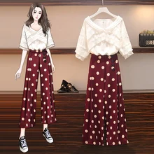 חליפת נשים בתוספת גודל 2020 קיץ גרסה קוריאנית טמפרמנט האופנה החדשה הייתה דקה עם שרוולים קצרים + מכנסיים רחבים רגליים סט שני חלקים