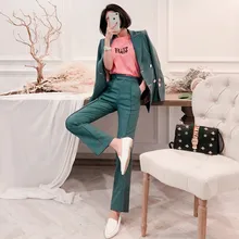 מכנסי בלייזר ורוד נדן לשנת 2019 הגעה חדשה ירוק סט 2 חלקים בתוספת גודל חליפה סתיו חורף עבודה סט שני חלקים לנשים