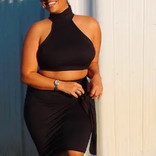 נשים שחורות Bodycon 2 סטים בשני חלקים פלוס תלבושות בגודל הלטר צמרות יבול ללא שרוולים + חליפות חצאית 2020 סטים לחצאית קיץ עם קשת