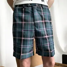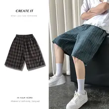 מכנסי קיץ משובצים אופנה גברים רטרו מותניים אלסטיים מכנסיים קצרים מזדמנים גברים בגדי רחוב רופפים מכנסי חמש נקודות ישר M-2XL