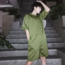 2020 קיץ נוער חדש פופולרי גברים צבע אחיד פשוט מכנסיים קצרים עם שרוולים קצרים אופנה סרבל מזדמן שחור / ירוק