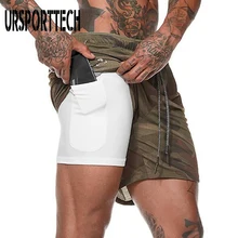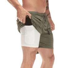גברים 2 ב 1 מכנסי ריצה שכבה כפולה מכנסי ג'וגר מכנסי ריצה כושר כושר מהיר יבש חוף מכנסיים קצרים מכנסי טרנינג מובנים