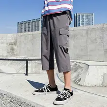 2020 קיץ חדש לנוער פופולרי צבע אחיד מכנסי מכנסיים מכנסיים רב-כיסיים אופנה מכנסי חמש נקודות מזדמנים M-XL